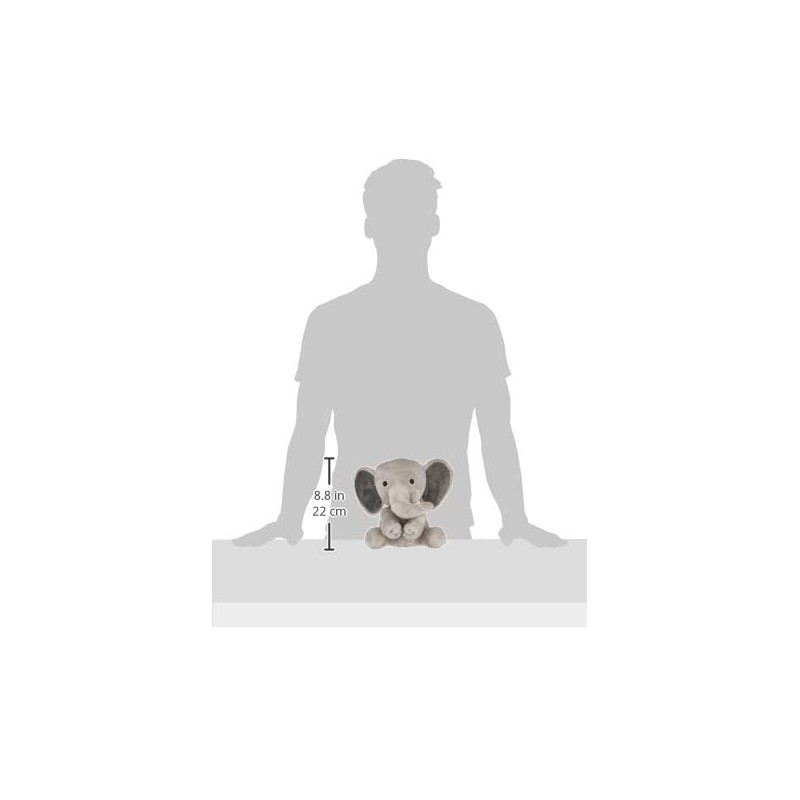 Choo Choo express plush dunphy the elephant measures approximately 9" long x 8.5" wide, when sitting down. It is made of 100% polyester. Care instructions: machine wash in gentle cycle, tumble dry low and remove promptly. Age Group:Infant, Toddler