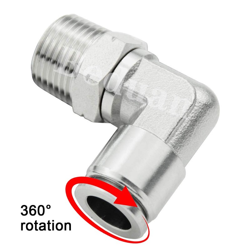 Beduan Push to Connect Fitting Elbow, 1/4" Tube OD x 1/8" NPT Male 90 Degree Elbow Adapter 304 Stainless Steel Air Union Fitting