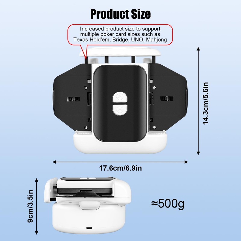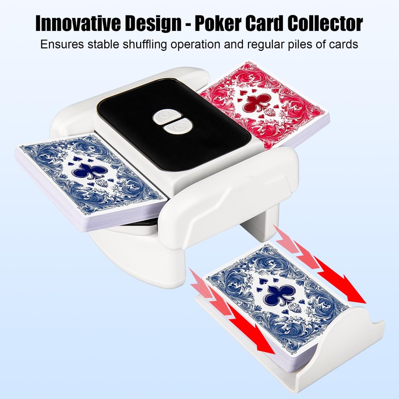 • Innovative Card Collection Tray: Say goodbye to messy, scattered cards! Our card shuffler latest design features "drawer" with a built-in card collection tray that keeps your shuffled cards neat and ready for the next deal. No more fumblingjust smooth, professional gameplay.