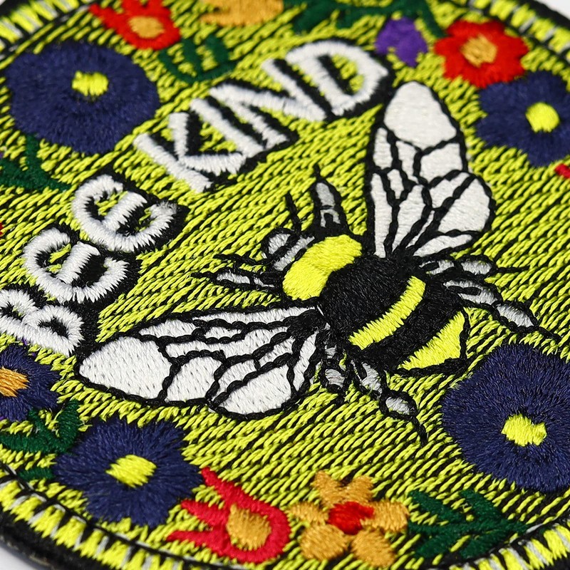 BEE Kind Patch | Bees Iron-on Patch for All Fabrics & Backpacks | Flower Sticker for Clothing and Jeans | bee Queen Badge Hippie Accessory Emblem | 70x70 mm