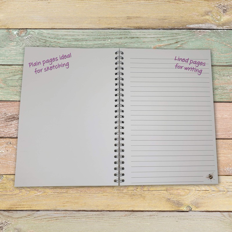 Bee Notebook – A5 / 21cm x 15cm / Wirebound/Lined and Plain / 100 Pages/Childrens Notepad/Kids Notebook/Girls Sketchbook/Ladies Journal/Bee Inspired/Bee Gift by Printykins