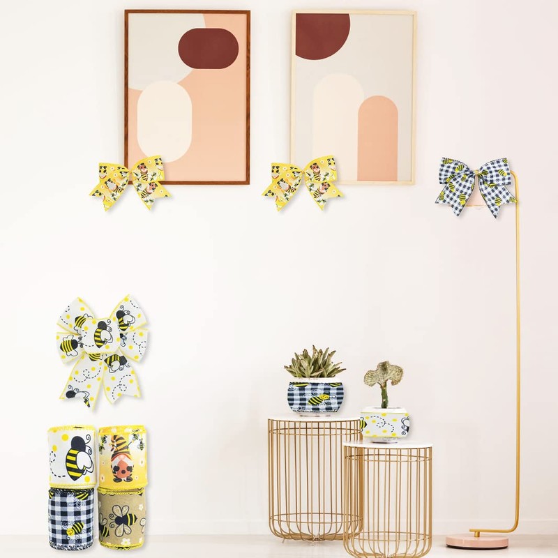 - 【Package Content】 Bee ribbon set have 4 rolls, each roll is 2.5inch wide and 5yard length, total length 20 yards, sufficient quantity and size to meet daily DIY needs