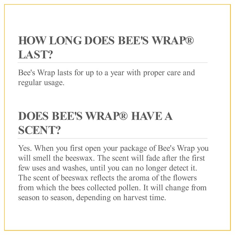 • Used several times each week, Bee’s Wrap should last for approximately one year