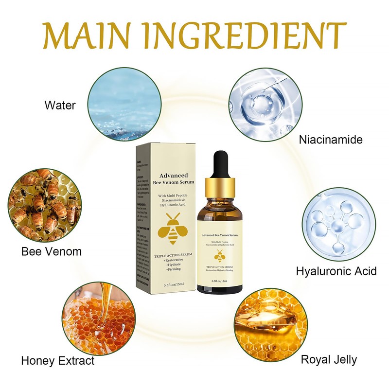 - ❣【Natural Ingredients】This venom bee serum is made of natural ingredients and will not cause any harm to your skin, so you can use it with confidence. The bees venom serums deeply moisturizes your skin and locks in moisture for your skin.