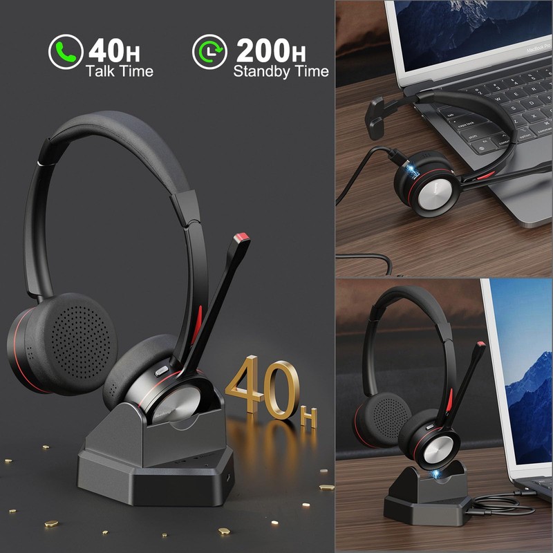 LONG BATTERY LIFE Offering an impressive 40 hours of working time on a single charge, our office headset ensures uninterrupted usage during long journeys or work hours.Perfect not only for phone calls and music but also for various professional settings including for online courses, call centers, offices, home work, perfect for Microsoft Teams, Cisco Jabber, Zooms, voip calls, business meetings, webinars, Skype chats, telephone conferences.
