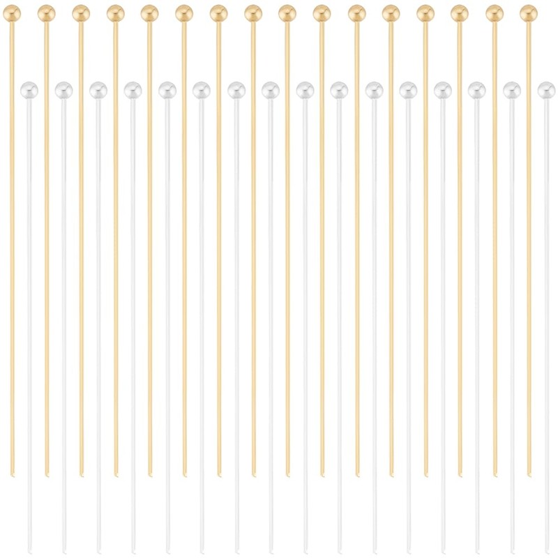 Beebeecraft 1 Box 100Pcs Ball Head Pins 18K Gold&925 Sterling Silver Plated Non Tarnish 50mm Long 24 Gauge 22 Gauge Ball Eye Pins Jewelry Making Findings for Earrings Charm Beads DIY Making