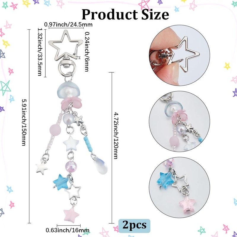 Beebeecraft 1 Box 2Pcs Star Keychain Resin Star Keyring Tassel Charm Pendants Key Chain with Alloy Swivel Clasps for Wallet Purse Handbag Car Keys Birthday Christmas Party Favor
