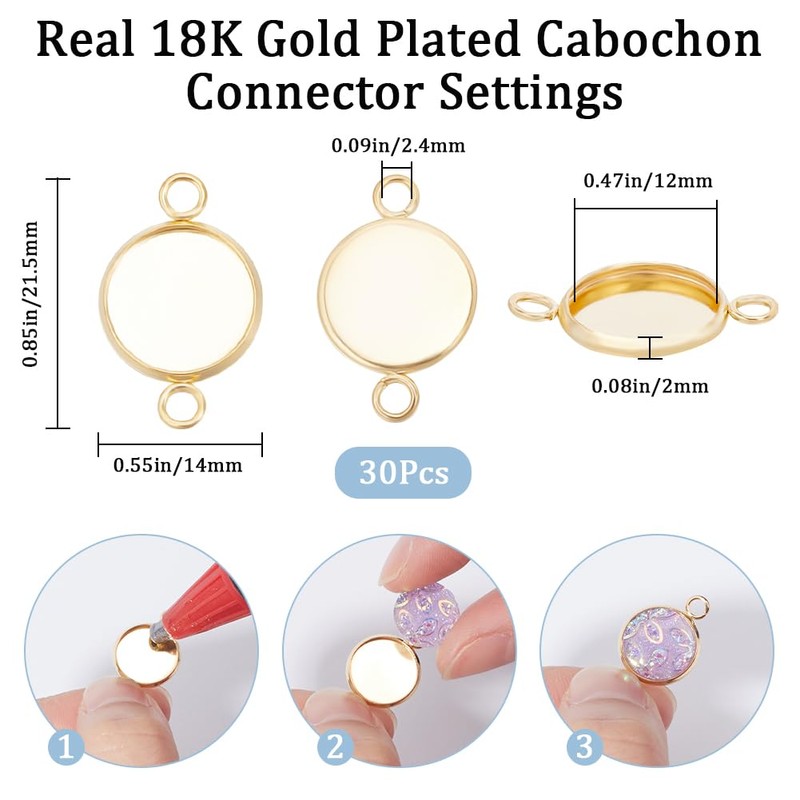 - 30 pieces plugs in a box: 30 pieces cabochon plug settings, all packed in a small box: 6.8 x 5.2 x 1.1 cm, easy to not lose the parts, can protect chains from dirt.