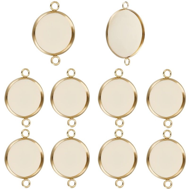 Beebeecraft 1 Box 30Pcs Cabochon Connector Trays 24K Gold Plated 201 Stainless Steel Round Link Charms Plain Edge Bezel for Jewelry Making DIY Craft (Tray: 16mm)