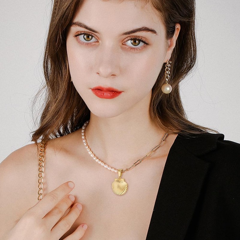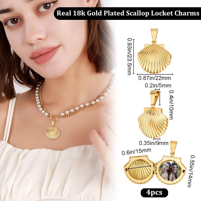 - [18K Gold Plated Shell Charm]: Scallop locket pendants are made of 18k gold plated stainless steel, the golden yellow sparkles, which makes it more textured. Not easy to rust or fade, great for long term wearing.