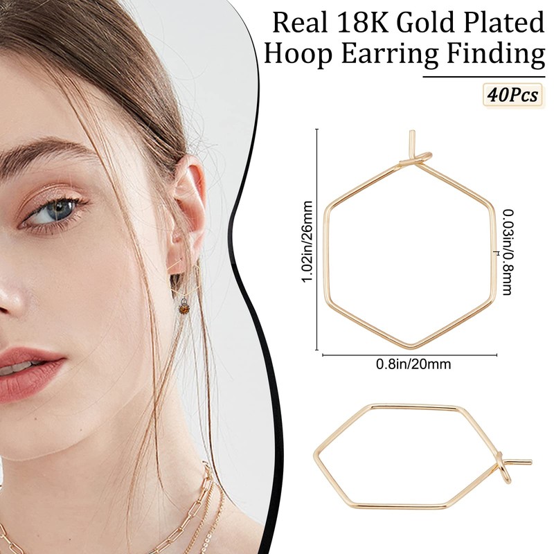 Beebeecraft 40Pcs Geometric Earring Hoops 18K Gold Plated Hexagon Wine Glass Charm Rings Earring Beading Hoop for DIY Earring Making