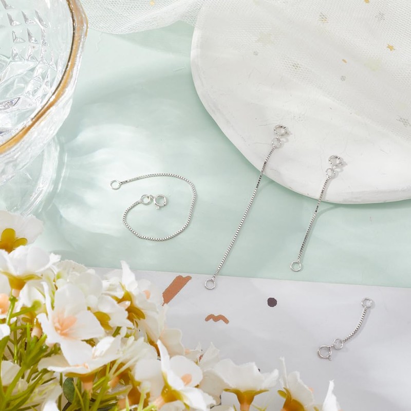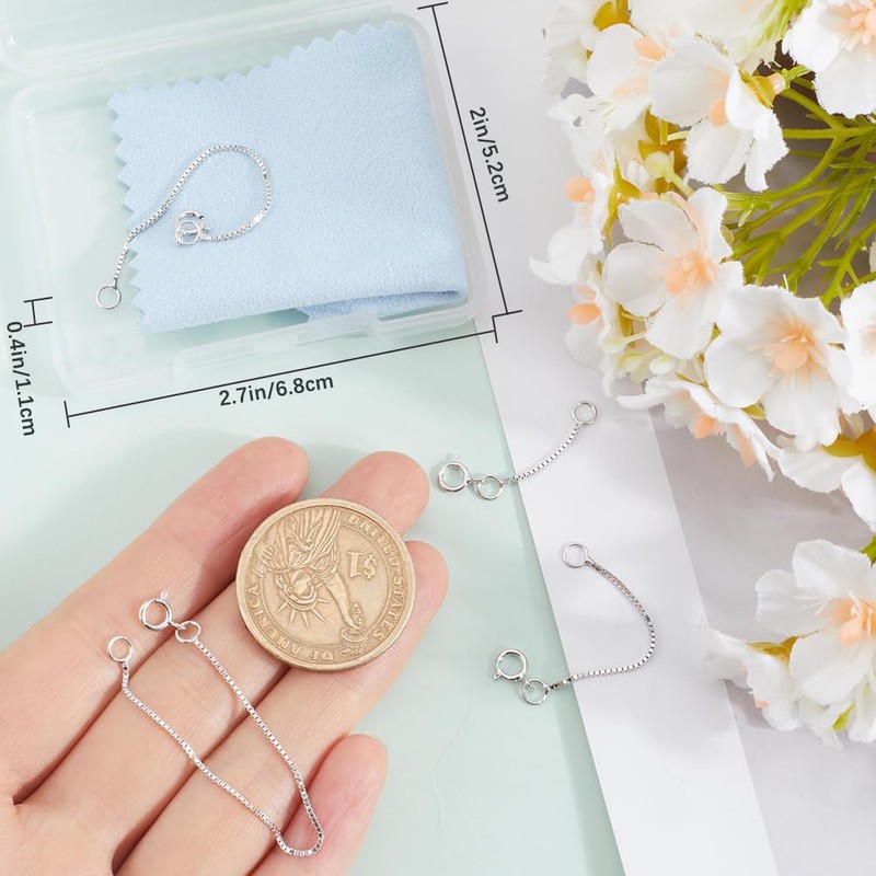 Beebeecraft 4Pcs 4 Sizes Rhodium Plated 925 Sterling Silver Box Chain Extender for Choker Anklet Necklaces DIY Jewelry Crafts Making
