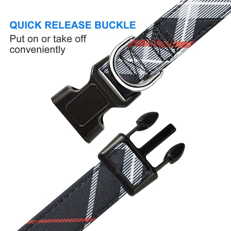 • SAFETY AND CONVENIENCE: Strong quick release buckle helps you put on or take off the dog collar conveniently. No need to adjust the dog collar every time. The buckle is curved for your dog's comfort