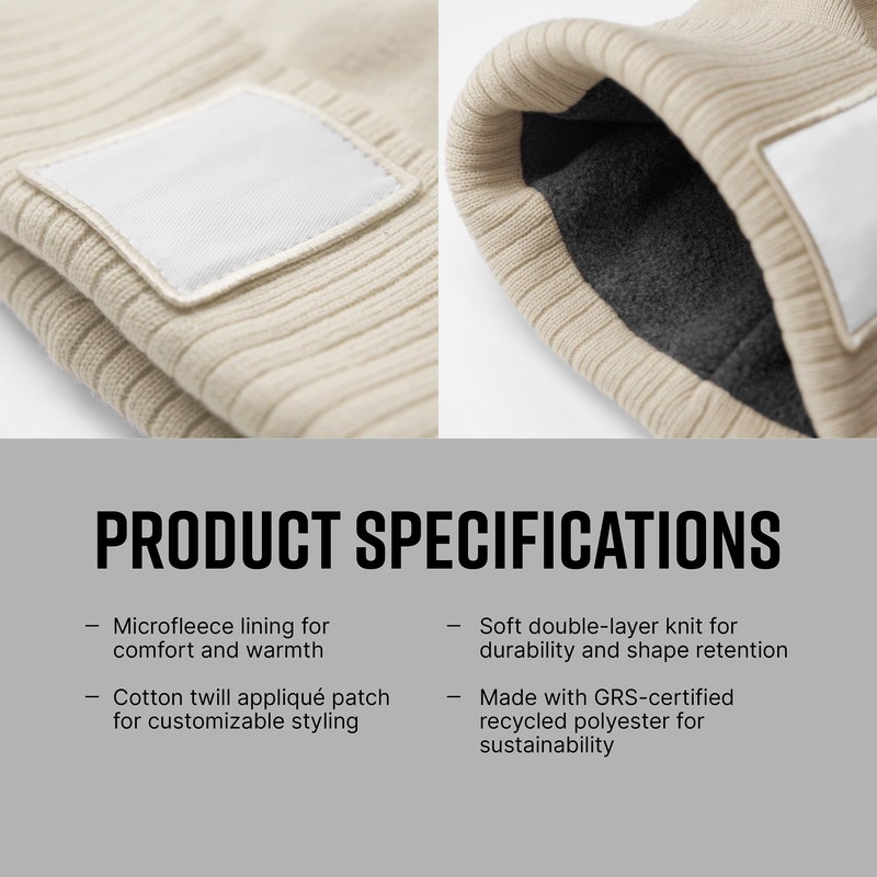 - Umweltfreundlicher Komfort: Hergestellt aus 100 % GRS-zertifiziertem recyceltem Polyester, ist diese Mütze sowohl mit Komfort als auch Nachhaltigkeit konzipiert. Genießen Sie die Gewissheit, die durch das Tragen eines umweltbewussten Produkts entsteht, und bleiben Sie gleichzeitig gemütlich und stilvoll. Jede Mütze ist von Control Union CU811033 zertifiziert, um sicherzustellen, dass Sie eine verantwortungsvolle Wahl für den Planeten treffen.