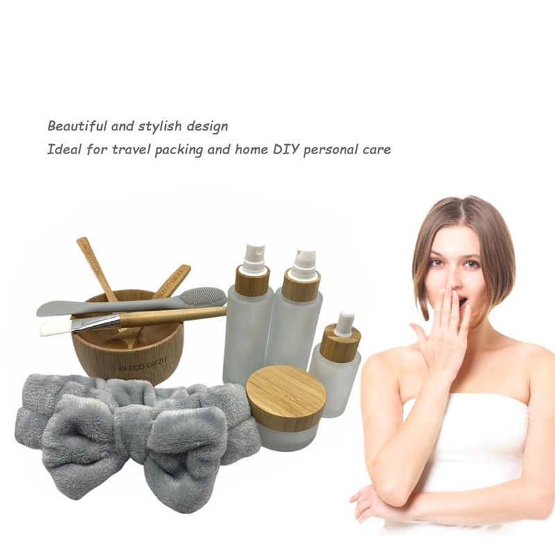 - 【PRACTICAL FACE MASK KIT】The package comes with a set of 9-in-1 DIY skincare tool facial mask bowl set made by natural bamboo frost clear glass, including mask mixing bowl,spoon, spatula,1 facial brushes,cosmetic empty refilable glass cream jar 30g,lotion pump bottle 60ml,spray bottle 60ml,dropper bottle 30ml,silicone mask applicator,headband- this face mask kit is sufficient to create a relaxing DIY facial spa experience at home and the containers are designed to store your skin care products.
