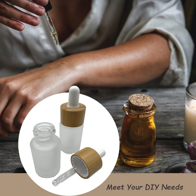 - Material for travel size dropper bottles:Flat shoulder frosted clear with natural bamboo dropper those are portable bottle of essence liquid at home or travel.The perfect enhancement to your cosmetics collection.