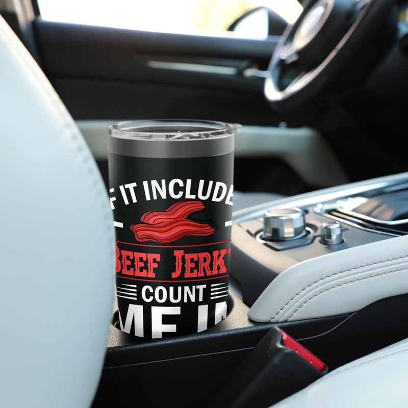 - This If It Includes Beef Jerky Count Me In design is ideal if you love meat.