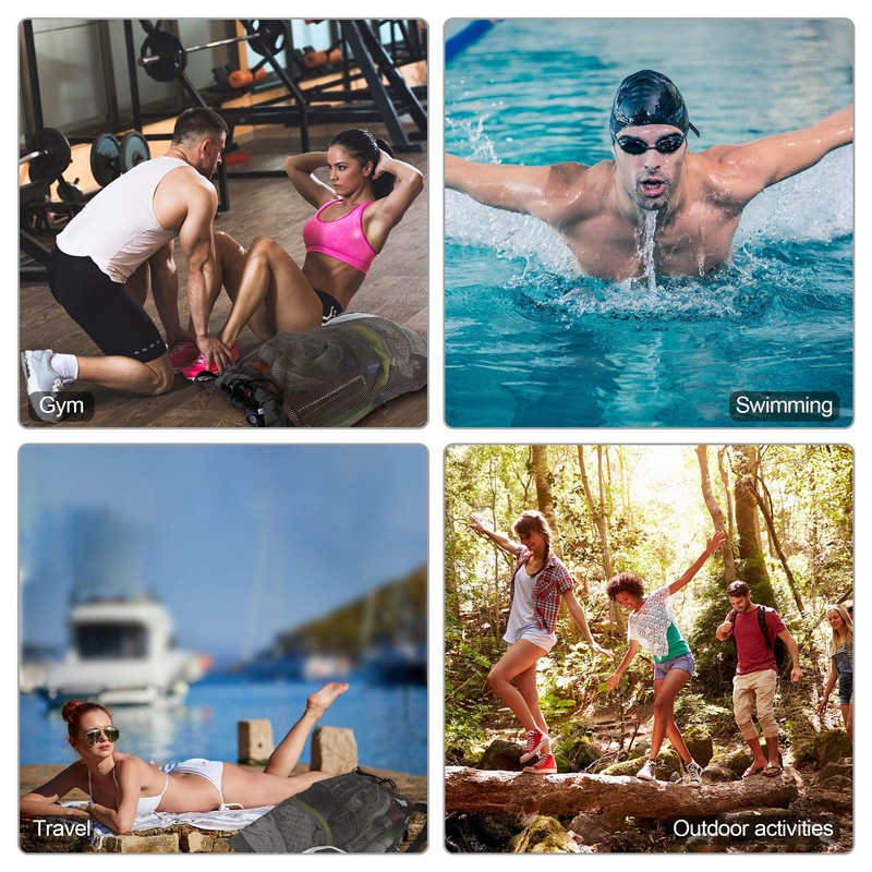 • MESH CONSTRUCTIONS & KEEP CLEAN: Our swimmers bag Design keeps sand and water away for quick-drying, allows you to find what you need quickly, such as beach towels, shoes, swimsuits, sunglasses, goggles, snacks, etc. Great companion for the gym, swimming pool, beach travel, outdoor activities, etc.