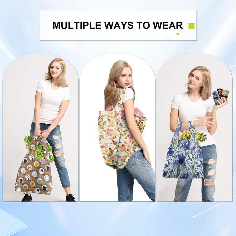 - Spacious & Sturdy Design: Measuring 14.2"W x 27.5"L x 4.7"D, our reusable grocery bags are designed for heavy-duty use. Made from lightweight yet resilient polyester fabric with reinforced seams and bias tape, these grocery bags can hold over 50 pounds of groceries. A must-have for eco-conscious shoppers who love animals and want to reduce plastic waste.