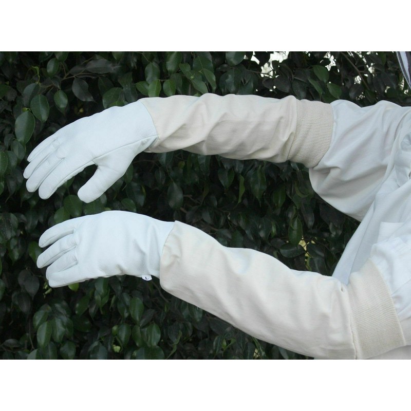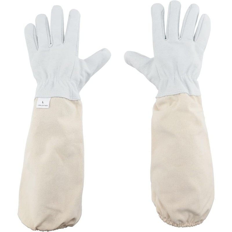 Beekeeping Bee Gloves- Soft White Goat Leather With Cotton Gauntlets Goatskin Professional Elastic Cuff Sting Thorn Proof Resistant Protection Gardening Work Ventilated Canvas Sleeves (L)