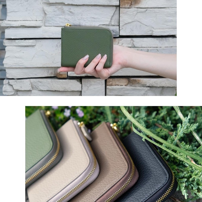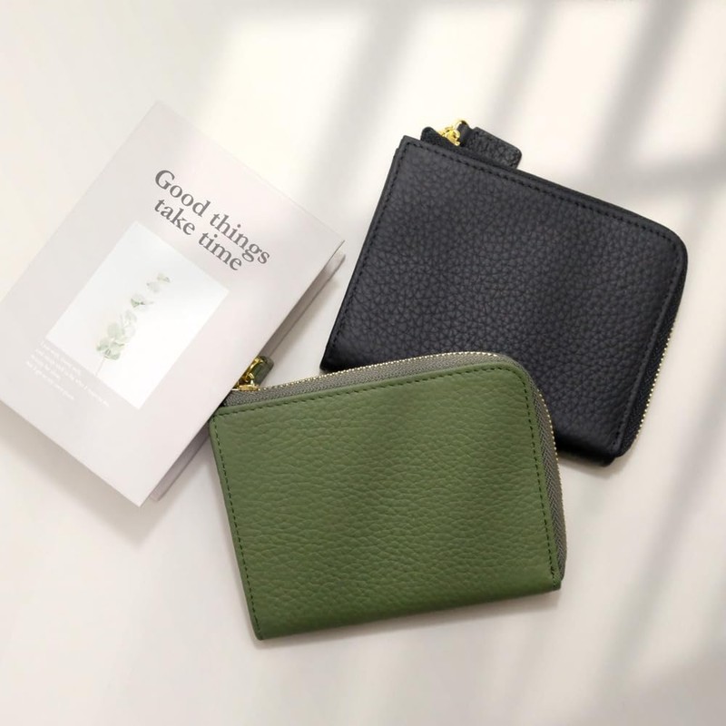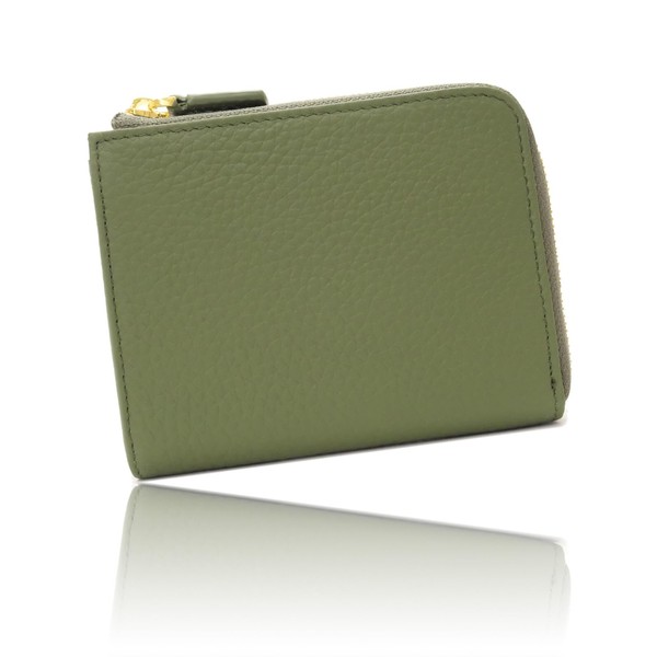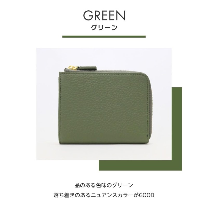 BEEL Women's Mini Wallet, Genuine Leather, Coin Case, L-Shaped Zipper, Stylish, Thin, green