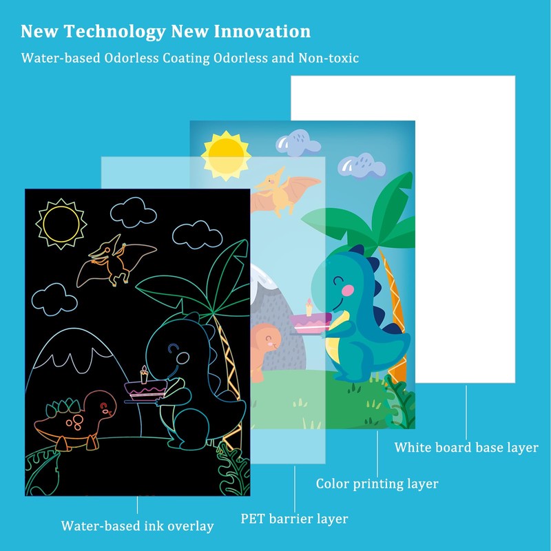 • High-quality materials: scratch book magic is made of cardboard, thick and not easy to deform, a black coating on the surface, which is non-toxic and odourless and safe for children, the pen is made of wood, not easy to break, strong and strong. Children will love this beautiful gift.