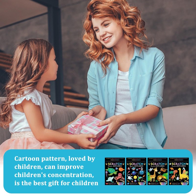 • Multiple styles: our scratch art contains 4 different styles about adorable and attractive; children can experience the graphic design process, combine the artwork with frame to enjoy the fun of scratching with family and friends.