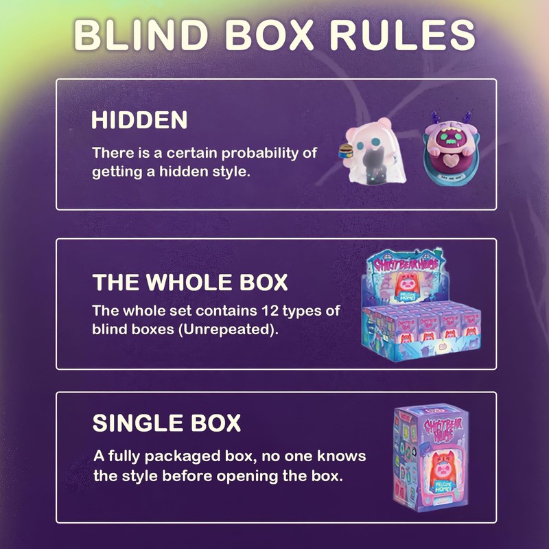 - 【About Random】NOTE: each blind box is randomly arranged. You may get the hidden edition in any single box. 3PCs wille be 3 different figures, and the Whole Set consists of 12 different figures.