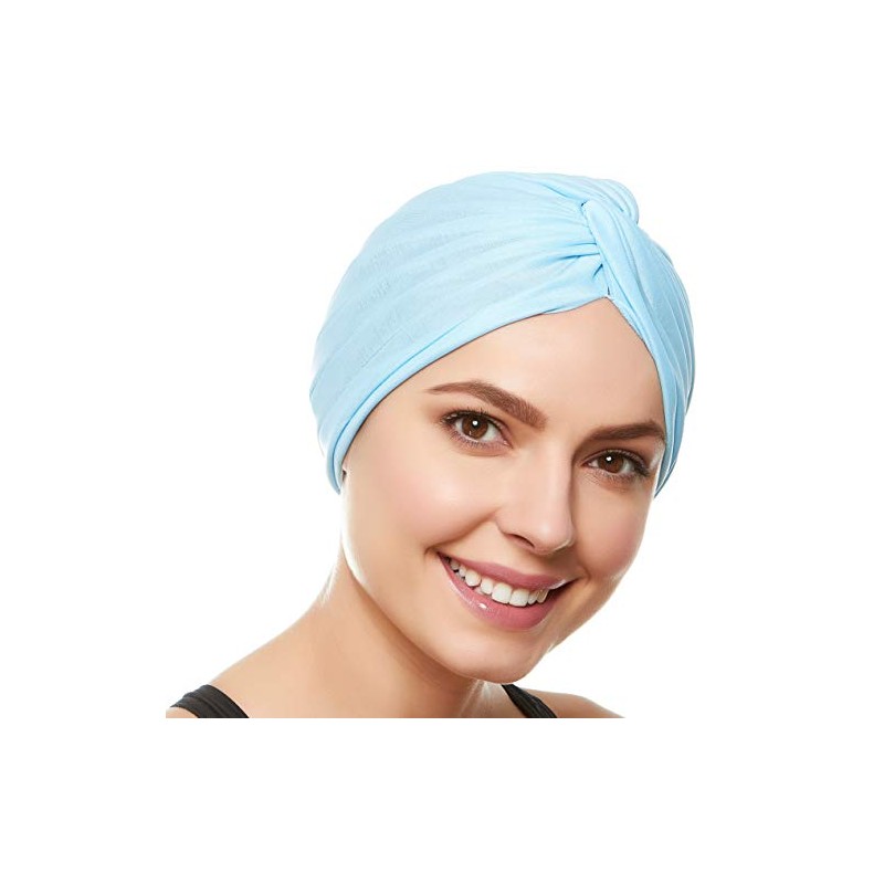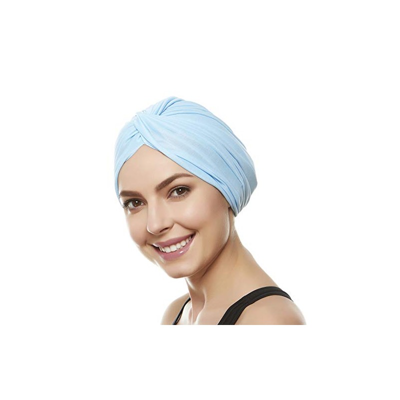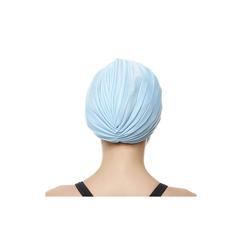 Beemo Polyester Twisted Pleated Turban Head Cover - Light Blue