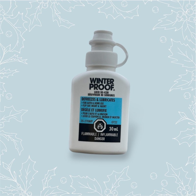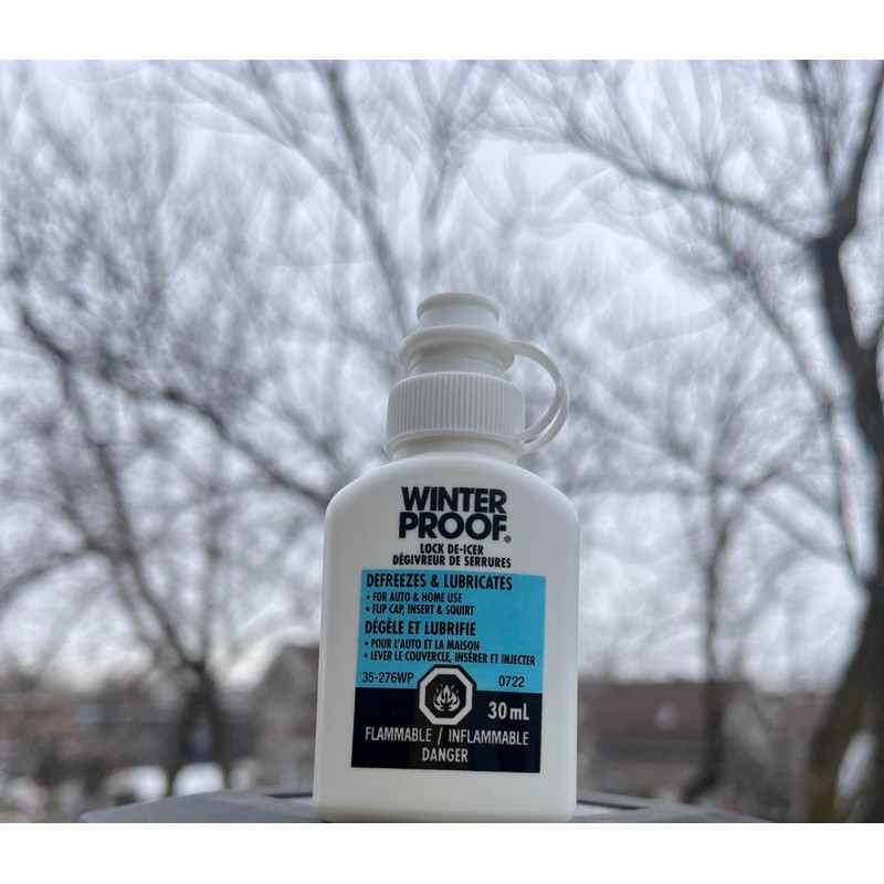 Unlock frozen locks and lubricate mechanisms with this Lock De-Icer, a rapid de-icing agent. Quickly thaws frozen vehicle locks, padlocks, and other mechanisms while lubricating the inner workings. The convenient 30 mL bottle with easy-to-use caps make application simple. This bottle of Winter proof Lock De-Icer ensures you have enough on hand to tackle multiple frozen locks. Keep this bottle in your vehicle, home, and workplace for when you need to quickly de-ice and lubricate stuck locks and mechanisms. The de-icer and lubricant can be used to defrost any frozen lock. Apply generously to the keyhole and the key, then insert the key to unlock. Continue using the product every 2 months to keep the locks lubricated, thereby maximizing their overall lifespan.