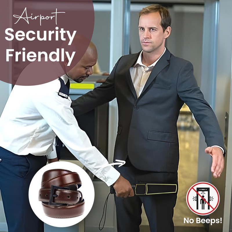 - ✅ 𝟏𝟎𝟎% 𝐌𝐞𝐭𝐚𝐥-𝐅𝐫𝐞𝐞 & 𝐓𝐒𝐀 𝐅𝐫𝐢𝐞𝐧𝐝𝐥𝐲: Designed for hassle-free travel and security, this metal free belt men is completely airport friendly. No more removing your belt at airport security – this TSA friendly mens belt metal free lets you pass through checkpoints without delays. Ideal for work environments requiring non-metal belts.