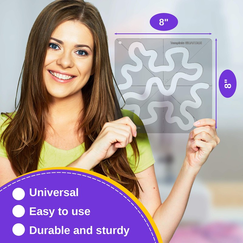 Master Free-Motion Quilting with Ease!When it comes to quality and customer satisfaction, we never compromise. That's why we use only premium materials and expert craftsmanship to bring you a quilting tool that meets the highest standards. Whether you're a beginner learning free-motion quilting or an experienced quilter perfecting intricate designs, this professional meander quilting ruler is the perfect tool to elevate your quilting projects.Why Choose This Quilting Ruler?Crafted from high-quality 4mm thick acrylic, this sturdy and durable quilting template provides unmatched precision. Unlike flimsy rulers that bend under pressure, our solid acrylic design ensures perfectly even quilting patterns every time. The clear, highly visible design makes it easy to see on any fabric, while the user-friendly layout allows you to create stunning stipple and meander patterns with minimal effort.Designed for Every Quilting SetupCompatible with all sewing machines—domestic and industrial—this versatile quilting stencil allows you to quilt effortlessly, no matter where you work. Whether you're creating baby quilts, home décor, or large-scale textile projects, this ruler helps you achieve professional-quality results in no time.Key Features: Professional quilting template – Perfect for free-motion quilting and intricate patterns Premium 4mm acrylic material – Sturdy, durable, and built to last User-friendly & easy to control – Ideal for beginners and experts alike Highly visible on any fabric – Ensures accurate stitching and alignment Compatible with all sewing machines – Works seamlessly with domestic and industrial models Perfect size (8” x 8.5”) – Ideal for both small and large quilting projectsTake Your Quilting to the Next Level – Click 'Add to Cart' Today!
