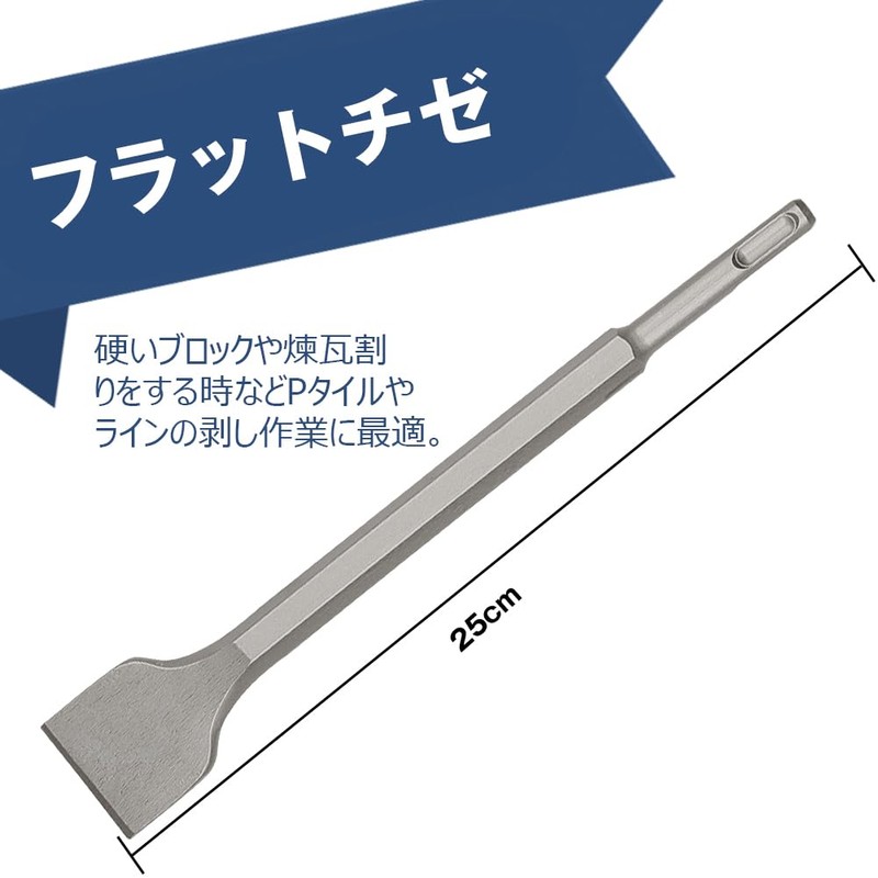 (Usage & Precautions) Point Chisel: Always ensuring powerful breaking force, and can be used for a variety of building things. Cold Chisel: It has a strong grinding power that can be used to grind, crush, groove or corner any building. Flat Chisel:Ideal for stripping P-tiles and lines such as hard blocks and brick cracking. Note: Please note that if you apply excessive force in a direction that differs from the direction of the force strike as a lever, etc., it may cause the chisel breakage or bending.