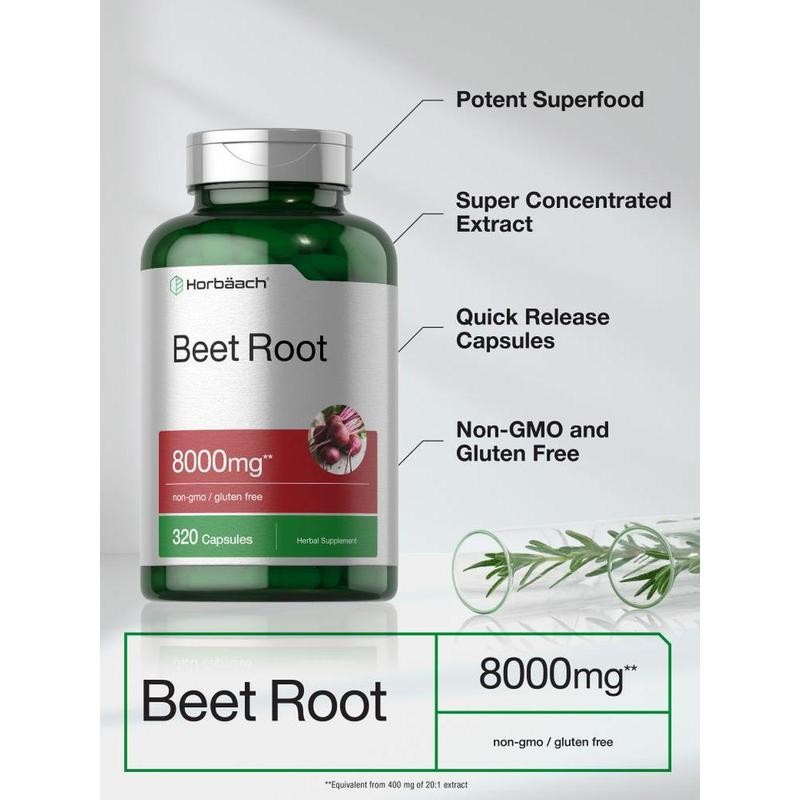 This gluten-free and Non-GMO formula provides the equivalent of 8,000 mg of premium Beet Root per serving. Laboratory tested for purity and potency, Horbaach Beet Root Extract offers a reliable and effective way to incorporate this nutrient-rich superfood into your daily regimen.