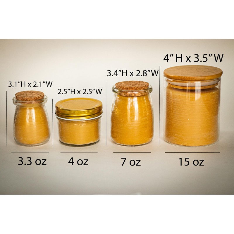 - Transparent glass jar with lid: This jar candle comes in an exquisite clear glass vessel that showcases its vibrant glow and enhances any decor. The charming lid adds an extra touch of style and keeps the candle fresh and helps preserve its fragrance. Measures 2 ⅜ inches wide x 3 ¼ inches tall.