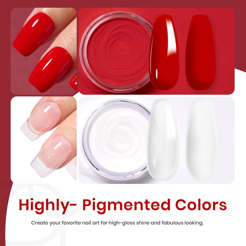 - ▶ Protect your hands: The clear red dip powder nail set is made from 11 non-toxic ingredients with safety requirements, low odor, and no irritating ingredients or adhesives.