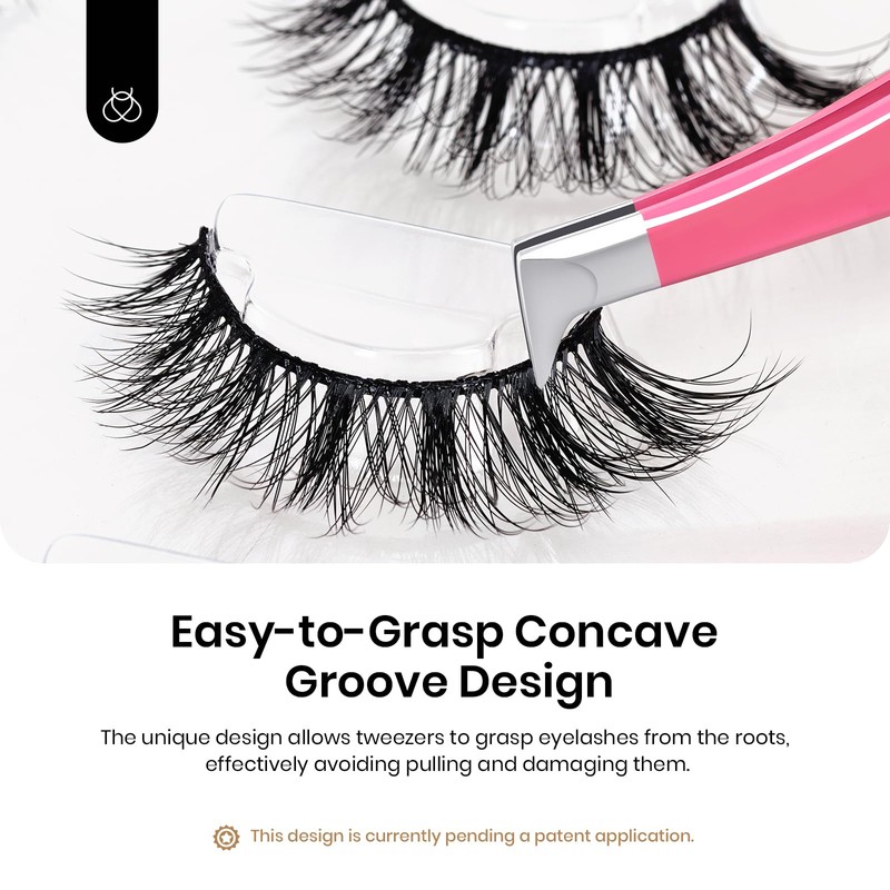 - Advanced Design: Adopting 3D technology, each eyelash presents a three-dimensional curling effect, which can show a layered beauty from different sides. The concave groove design perfectly keep the shape of the eyelashes and easy to grasp them. Bent tip tweezers make the wearing process simple and fast.