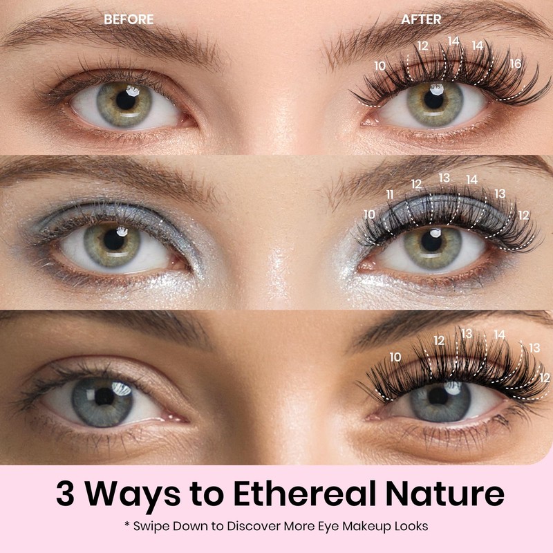 - DIY Different Lash Style: No-trim, easily achieve a variety of lash looks with our lash clusters, available in lengths from 10mm to 16mm, with a mix of 30D and 40D densities and a natural D curl. Craft the perfect eye shape for any occasion, whether it's a natural eye or a dramatic eye. These eyelash clusters are ideal for daily or special occasions, get the look and feel of real lash extensions without a pricey trip to the salon.