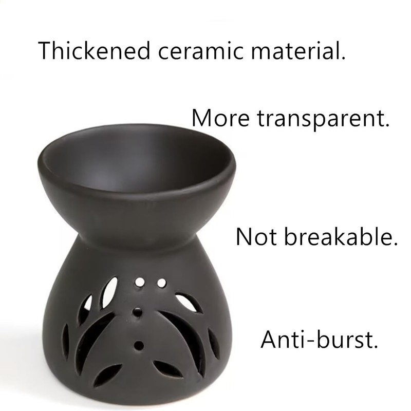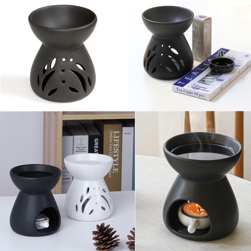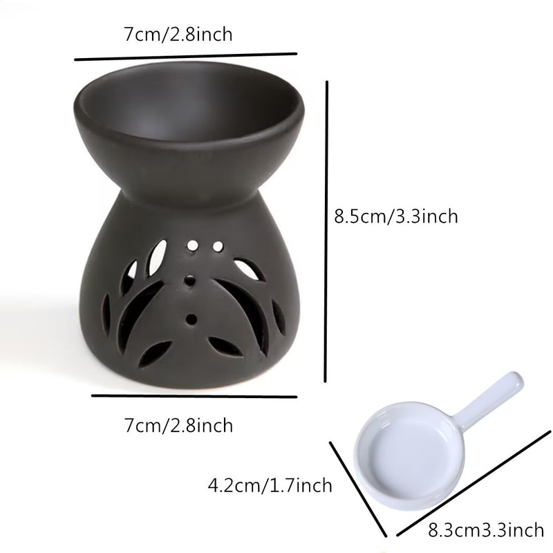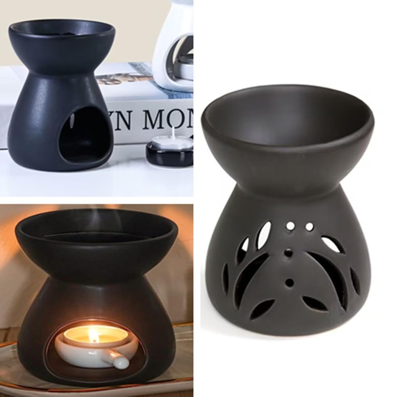 Beetoo Essential Oil Burner, Wax Burner Ceramic Oil Burners, Ceramic Tea Light Burner, Aromatherapy Oil Burner for Home Bedroom Decor Christmas Housewarming Gift(Black)