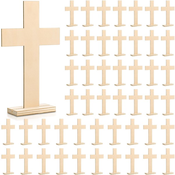 Beeveer 48 Pcs Nativity Wooden Crosses for Baptism, Unfinished Wood Crosses for Centerpieces Wood Standing Cross for Crafts Rustic Wood Cross First Communion Baptism Christmas Decorations (Classic)