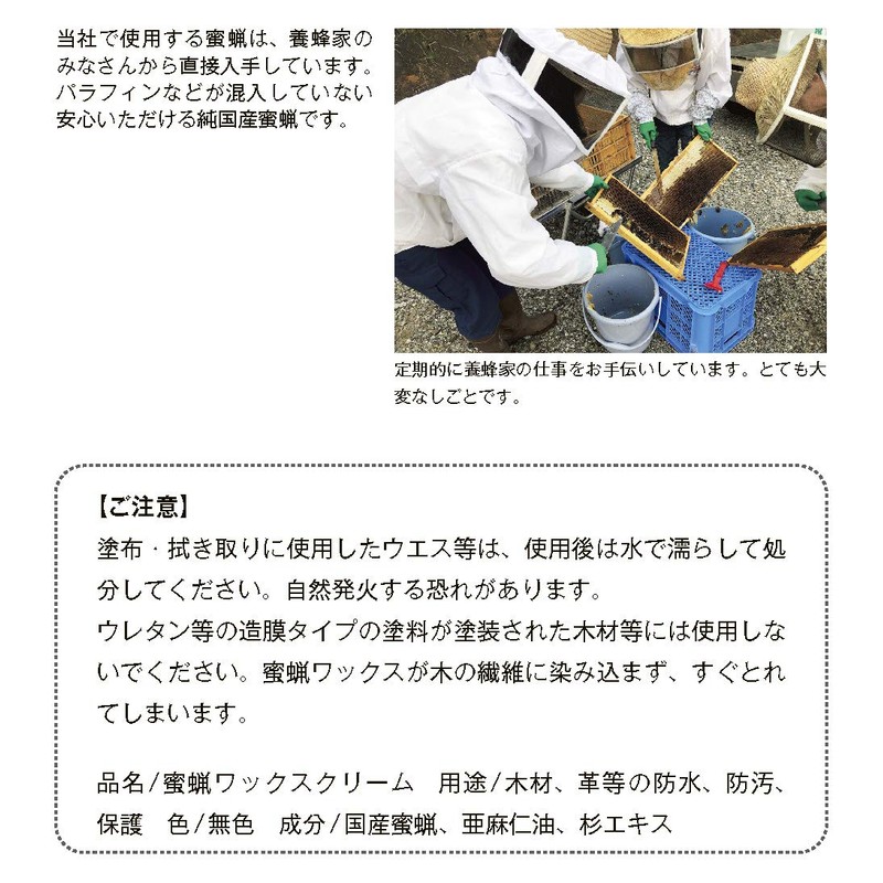 - This is a beeswax wax made from 100% natural materials made from Japanese beeswax, linseed oil and cedar extracts, Nagano, Gifu, Hokkaido. Safe for homes with small children