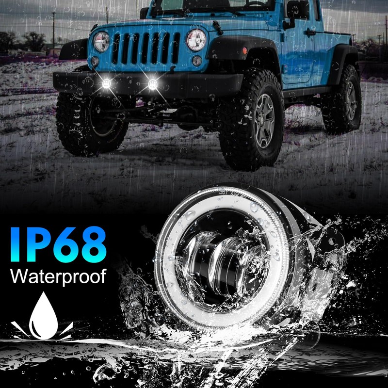 - IP68 Waterproof Rate: This LED wrangler fog lights is sealed by waterproof rubber pad and silicone sealing strip, more effectively prevents rain, fog, moisture, or dust to get inside the fog light and ruin it. Built with IP68 rating waterproof, rainproof, shock resistant, works even in extreme situations