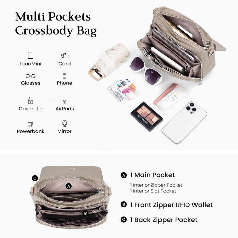 - Purse with Built-in RFID Wallet: No need to carry a separate wallet! This leather shoulder bag combines a crossbody bag, RFID wallet, and card holder all in one. The front zipper RFID wallet featuring 6 card slots, 1 zip bill pocket, and 2 slot pockets. The RFID Blocking Card Slots providing added security against digital pickpocketing