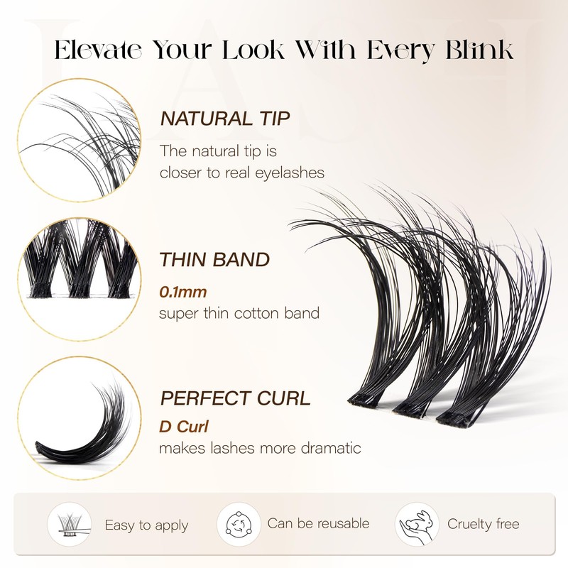 - Friendly for Beginner: Simply brush a thin layer of lash glue onto your natural lashes, apply the clusters in the way you like, and finish with a light coat of bond to achieve salon-quality lash extensions effortlessly