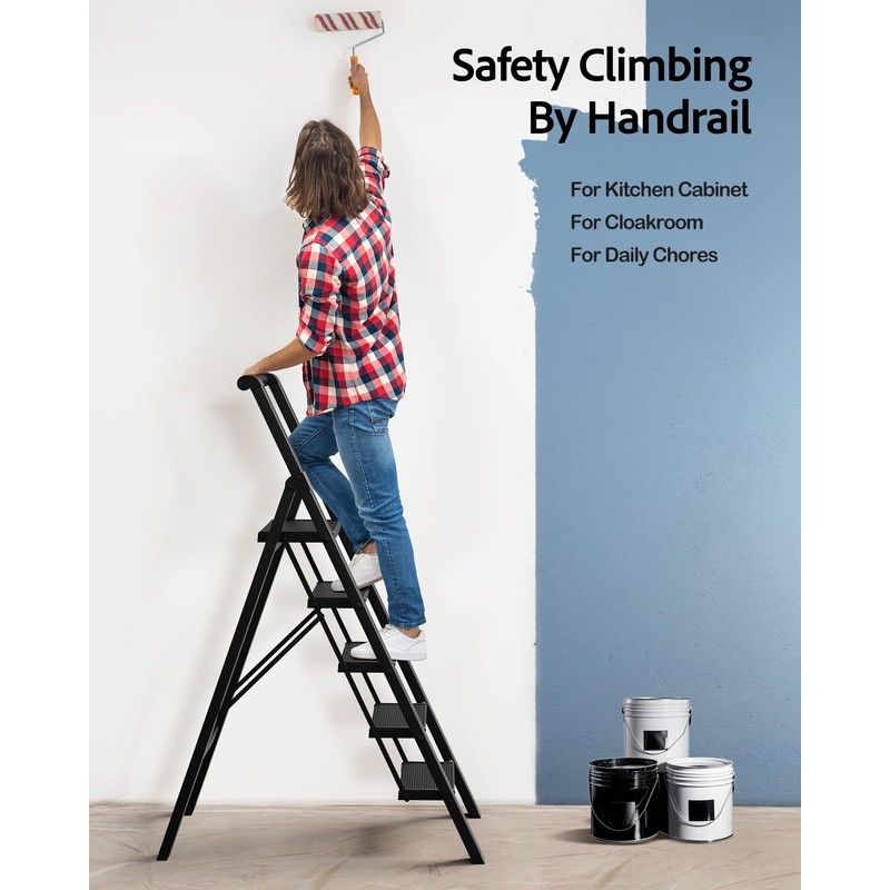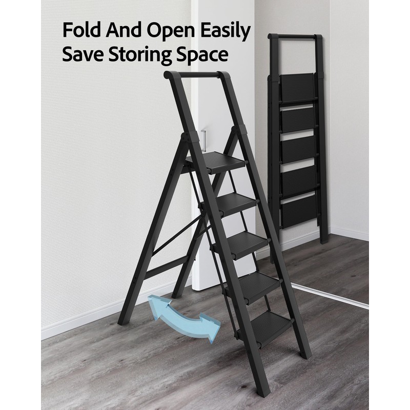 BEFITMACE 5 Step Ladder, Lightweight Folding Step Stool with Convenient Handgrip,Aluminum 330lbs Capacity Step Ladder for Office,Household,Kitchen(Black)