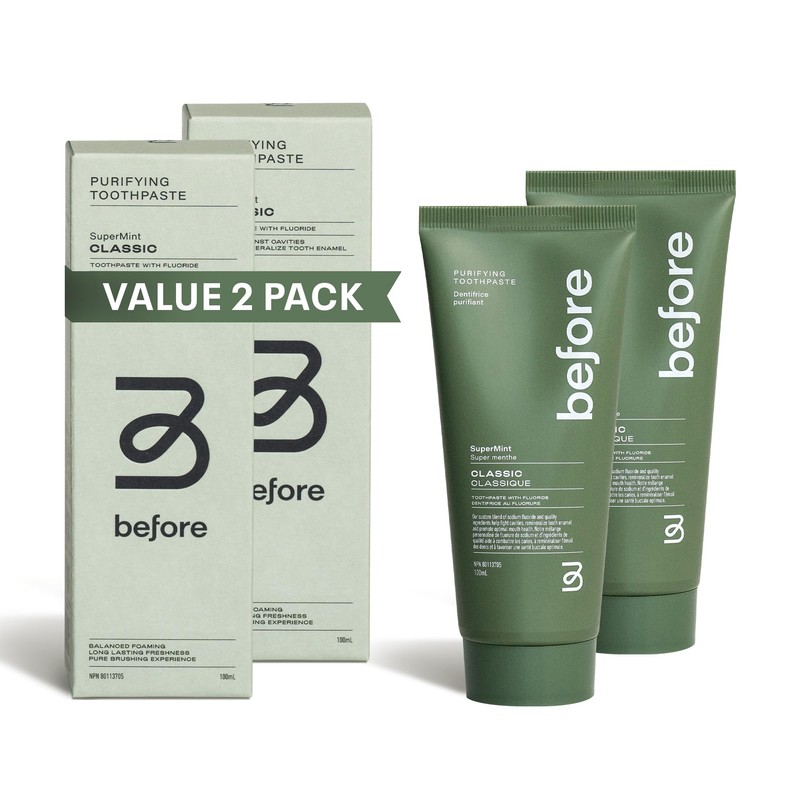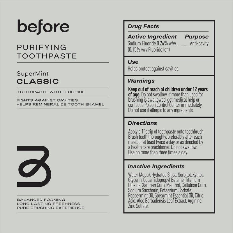 - ALL NATURAL CLEANING. Before's Classic Toothpaste goes to battle against tooth degradation with our custom blend of premium ingredients. This 2 pack fights cavities and strengthens tooth enamel without harmful chemicals.