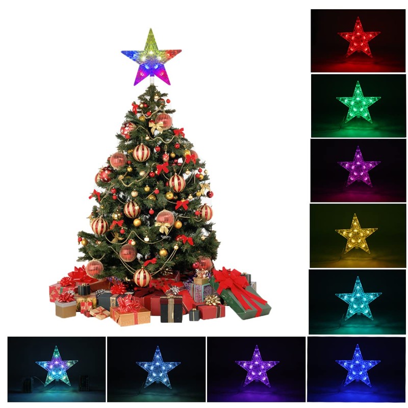 - 1. 【Universal Size】The tree topper star measures 9.5 x8.5 x 2 inch, ideal for Christmas trees of all sizes. Easy to install, simply placed the star tree topper on the tope of Christmas tree, then turn on the remote control switch.