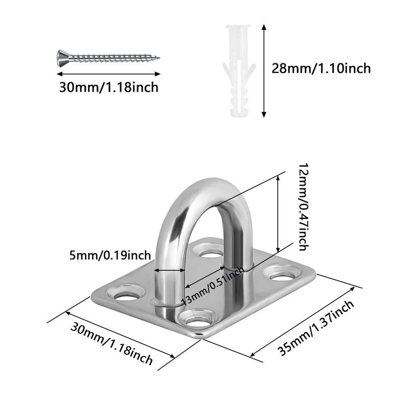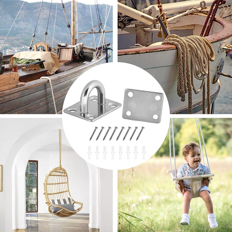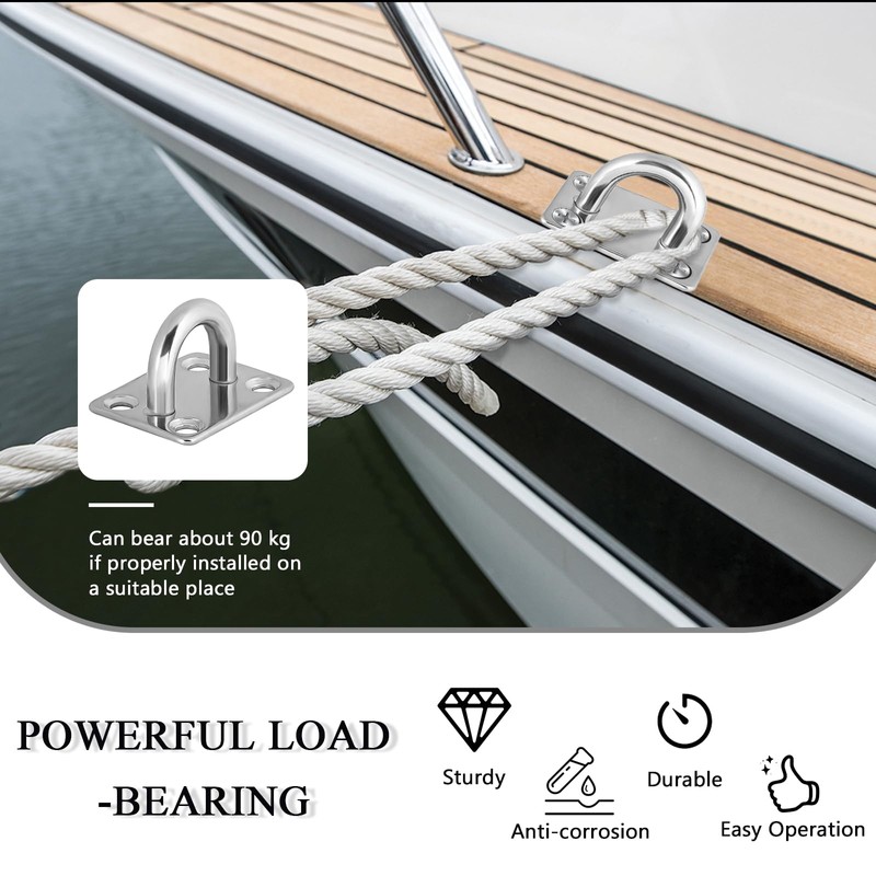- Exquisite Material: The eye hooks are made of high-quality stainless steel material, which is sturdy, hard, corrosion resistant, not easy to fray and deform, wire drawing surface, comfortable hand feel, the pad eye plate can serve you for a long time