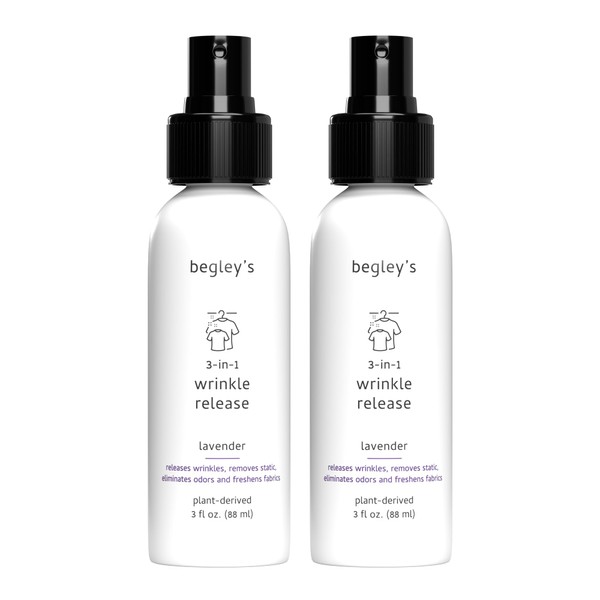 Begley's 3-in-1 Wrinkle Remover, Quick Fix Wrinkle Release, Static Cling Remover, Odor Eliminator and Fabric Refresher Spray - Plant-Derived, USDA Certified Biobased - Lavender, 3 oz Travel Size