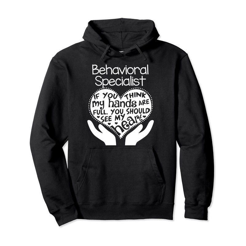 - Behavioral Specialists would love to wear this inspirational hoodie. "If you think my hands are full you should see my heart." Makes for awesome Behavior Specialist team apparel for Casual Friday or Jeans Day.